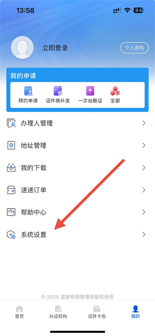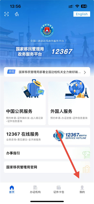1、打开国家移民管理局政务服务平台app,点击底部我的选项,进入我的个人界面。