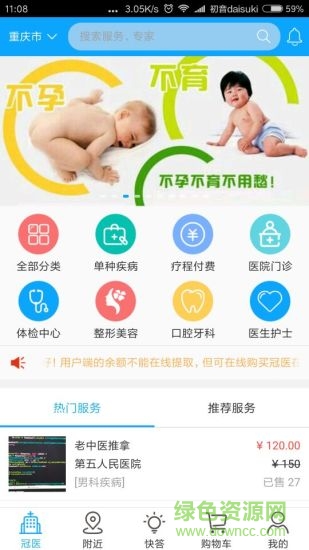 冠医是一个医疗服务商城,已与全国各城市多家医院签署服务协议,真正的实现了,在线咨询、预约、和医疗药品的购买等服务,更与全国多家快递公司合作,安全无损的将医疗用品送到你的手中,还在等什么?快来绿色资源网下载体验吧!