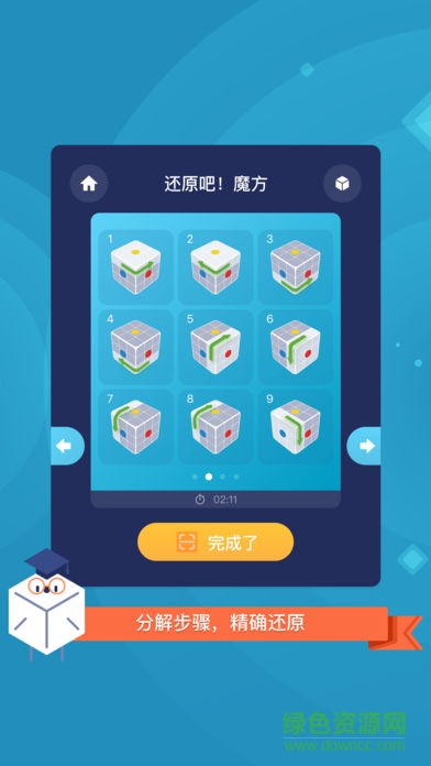 无论孩子手中的魔方处于何种状态,都能实时智能生成还原步骤,让孩子全面掌握魔方还原步骤和技巧。