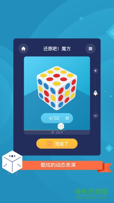 旋转吧魔方在哪下app?旋转吧魔方app在绿色资源网就能快速下载,旋转吧魔方是由葡萄教育推出的一款休闲益智类魔方游戏,游戏玩法多样色彩绚丽挑战难度不断升级,有助孩子大脑发育智力开发,在手机上就能轻松玩转魔方。