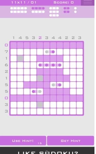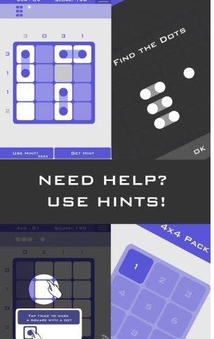 《逻辑点点 Logic Dots》是由Ayopa Games开发的一款非常好玩的益智休闲游戏,清新简洁的游戏画面和欢快的节奏音乐,让人爱不释手。玩法同样浅显易懂,只要在格子中点出圆点,组合成左上角提示的样式即可过关。此外边框的数字提示着该行或列的圆点数量,另外后期关卡都并非只有一种解法,配合12X12的加强版,灵活好玩又不失挑战。所以强烈推荐给喜欢益智游戏的玩家。