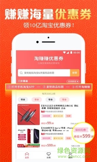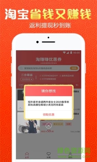 淘赚赚APP,让你网购不仅能省钱,还能挣钱,海量优惠券,折扣享不停!品类丰富,好货多多