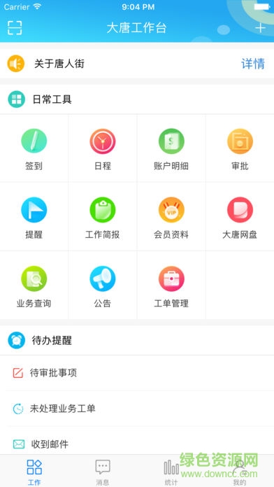 大唐办公app是适用于中小型企业的一款办公软件,提供完整的功能模块,用户可在线签到、提交审批、请假、查询业务等,随时随地在线办公,有效提高企业效率,欢迎来绿色资源网下载!