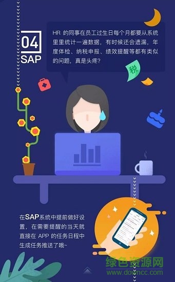 高效的协同办公应用:包括会议室在线预约、个人日程管理、工作日志汇报及评分、任务分发及进度监控。