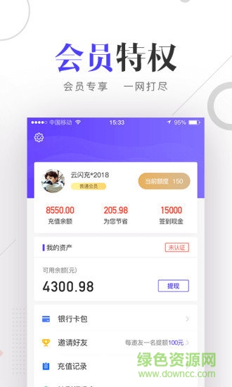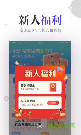 目前,云闪充用户可以享受话费、燃油卡充值95折优惠,云闪充自上线以来,以充值折扣为基石,以普惠用户为目的,以团结需求为根本,以多方共赢为宗旨。