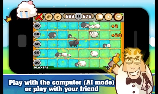 《山羊大碰撞 Bump Sheep》的优点就在于借用了《植物大战僵尸 Plants vs Zombie》的“形”,但内核——游戏玩法,则是全新的。在游戏中,玩家操控的黑羊和白羊为了争夺最优质的青草而展开了火拼,他们将以最原始的方式——比拼力量来一决胜负。玩家不仅可以和电脑 AI 进行对战,还支持二人同屏对战的模式。