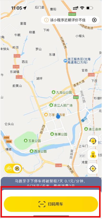 4、选择扫码用车时,将扫码框对准车上二维码,完成扫码解锁。