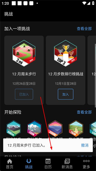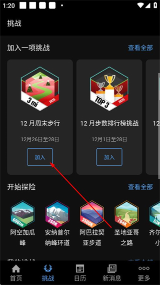 2、进入挑战页面后,在加入一项挑战板块中选择目标挑战,点击挑战对应的加入。