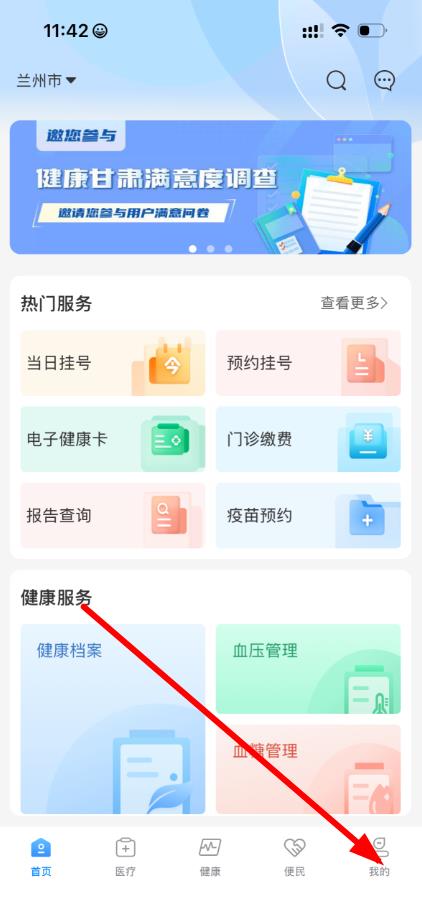 1、打开健康甘肃app,点击右下角我的,进入个人界面。