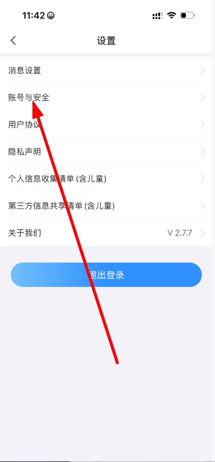 3、在设置页面,点击账号与安全选项,进入账号与安全界面。