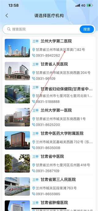 2、进入请选择医疗机构页面,选择要挂号的医院。