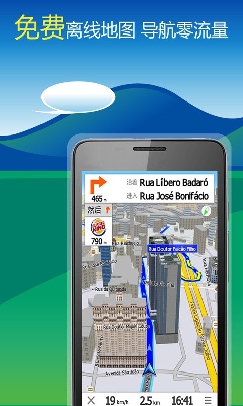 支持全球离线地图免费下载,WIFI直接下载,导航状态下不耗费流量,也无需任何网络和WIFI支持。