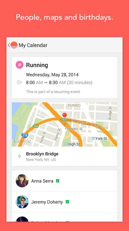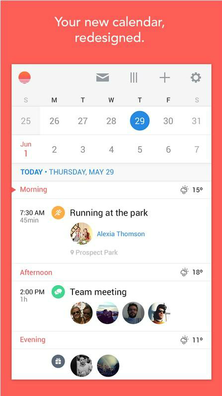 Sunrise 日历是由前 Foursquare 的设计师制作,早期只是一个通过邮件来提醒你日历事项的简单程序,但即便在那时它每次发来的邮件已经是一个精美的存在,在经过漫长的发展之后,Sunrise 终于推出了同样精美的移动应用。