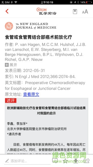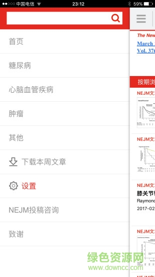 NEJM医学前沿中文版是一款医学软件,所有文章均以中文翻译,最新医学成果及时更新,全面覆盖各个科室,支持资料下载功能,不断帮助用户获取更多医学信息,欢迎来绿色资源网下载!