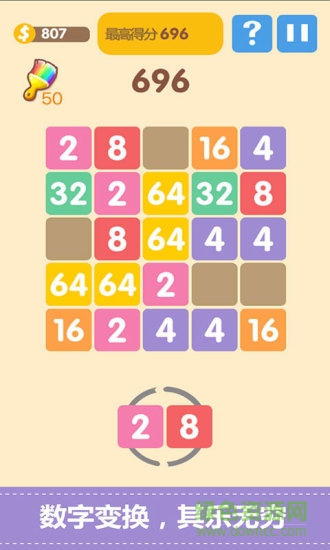 新2048和俄罗斯方块结合在一起,玩法乐趣升级。新2048是超级火的一款数字算数休闲益智游戏。上下左右滑动,数字方块随之往滑动的方向靠拢,同时系统会乱数出现一个数字方块在空白处,相同数字在相遇时会相加。