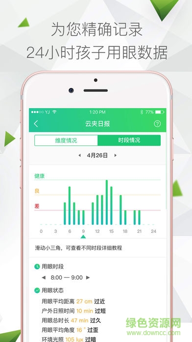 云夹app是一款与智能护眼夹扣搭配使用的手机软件,通过二十四小时数据,随时随地智能提醒用眼信息,让孩子们从小养成用眼习惯,欢迎到绿色资源网下载使用!