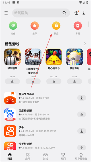 1、打开三星应用商店,点击上方的新品选项,进入新品应用列表页面。