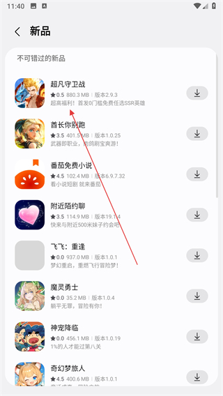 2、在新品列表中点击目标应用的条目,进入该应用的详情页面。
