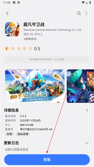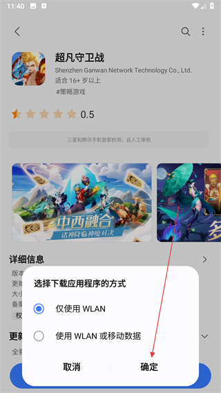 3、在应用详情页面点击底部的安装按钮,即可弹出选择下载方式。