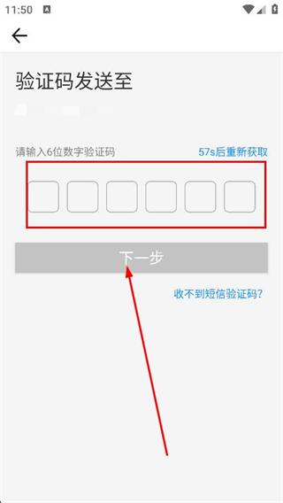 3、在验证码发送页面,输入手机接收到的验证码,点击下一步。