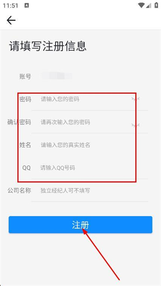 4、根据要求填写信息,填写完成后点击注册按钮,即可完成账号注册。