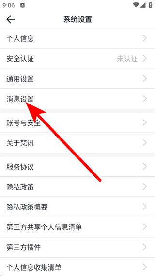 3、在系统设置页面,点击消息设置,进入消息设置的页面。