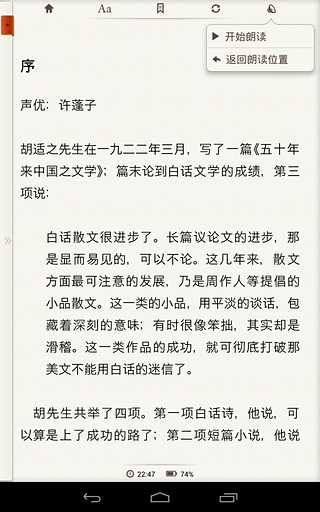 坐在沙发上用平板读到一半突然要出门?只要带上手机并同步一下,便可接着刚才的阅读进度继续读。需要登录唐茶账号方可同步。