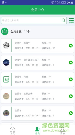 8、 会员中心页面修改,可根据会员积分,储值,消费周期进行筛选查询