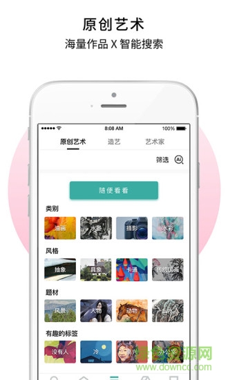 2,通过艺网艺术品搜索器搜索,根据主色调,风格,类别,尺寸对艺网万余件艺术品进行筛选