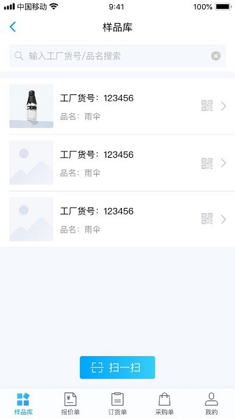高效店面管理工具,将外贸公司所需的样品信息都统一录入在 APP 样品库里,以单产品二维码形式贴在样品上,外贸公司通过 扫描二维码快捷提取产品基本信息(含图片信息).一次录入,一劳永逸.配合软件的其它功能,对有生意往来的工厂,外贸公司,客户等信息数据汇总,对店面进行科学的多维度管理!