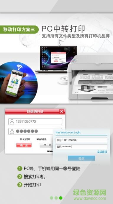 1.手机中的文档和图片、微信、微薄等最常用的应用可以通过家庭网络(局域网)或Internet网络(广域网)实现打印。这种打印方便快捷,一个可上网的移动终端,一台任意品牌的打印机连接在电脑上,一个联想帐号便可以实现,适用于家庭、企业及政府行业等各个领域内的打印。