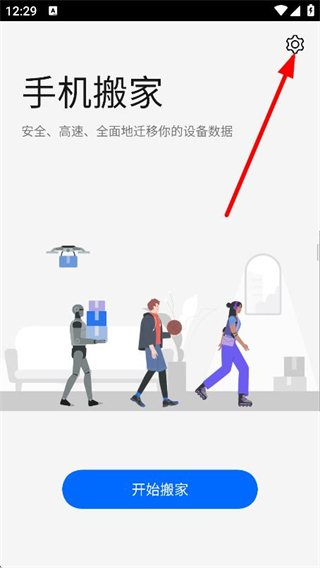 1、打开OPPO手机搬家应用主界面,找到右上角齿轮形状的设置图标并点击,进入设置页面。