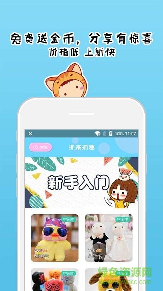 抓来抓趣app是一款手机抓娃娃app,新手入门教程告诉你怎么抓娃娃成功率大,娃娃种类繁多,非常可爱,总有你喜欢的一款,欢迎前来绿色资源网下载体验!