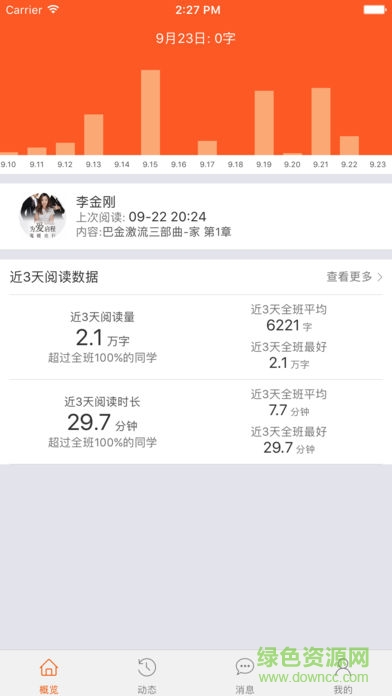 拾行读书家长版是一款供家长用户使用的阅读管理app,家长可以在这里查看孩子阅读进度情况和详细的阅读数据,还有班级整体的阅读排名,帮助孩子养成读书的好习惯,喜爱的朋友赶快到绿色资源网下载体验吧!