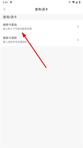 3、在查询退卡页面,选择维修卡查询选项,进入查维修卡的信息填写页面。