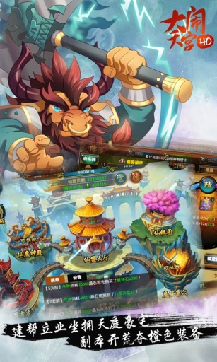 大闹天宫HD是2014年最具人气的首款国民级角色扮演类手游,百位明星鼎力推荐,亚洲型男何润东献唱同名主题曲。游戏独创3D人物角色真实对战,极致打击感为你呈现满屏华丽特效!海量趣味玩法百玩不厌,还能参与全服争霸、抓奴隶、劫镖船,首推“大闹天宫”全新系统,开启仙魔大战新纪元,新增比武场天体排位,激战三界,超越巅峰!游戏采用次世代引擎技术,为追求优质视觉表现的玩家带来世界级动态粒子特效和覆盖全屏的超强动作打击效果。故事背景取材西游文化,浓郁的东方神话与时尚玩法完美交融,集合了史上最全的神话人物,只为让玩家体验到恢弘浩荡的仙魔世界!RPG养成体验、多层次场景战役与悬赏任务、24小时自由PK资源争夺、规模庞大的公会副本……刺激痛快的战斗之余,劫镖运镖、抓奴隶等全新多样的趣味互动内容,让你百玩不厌,High翻天!