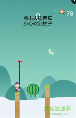 游戏中玩家需要砍西瓜,但是在砍西瓜的同时又不能砍到柱子哦,这是一个很艰难的操作,玩家一定要准确地把握时机,这样才能顺利过关!