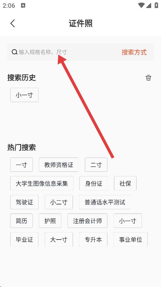 3、在搜索框中输入需要查找的照片规格,点击搜索。