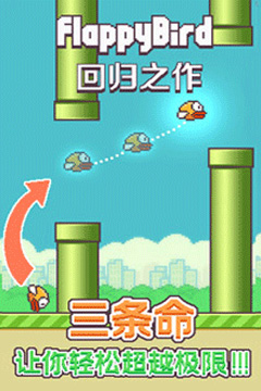 飞翔的小鸟(游戏英文名:Flappy Bird),Flappy Bird汉化升级版,拥有3条命的小鸟,能让你更好的享受飞翔。游戏中,玩家控制小鸟笨拙地飞过一个个管道,操作简单,上手容易!