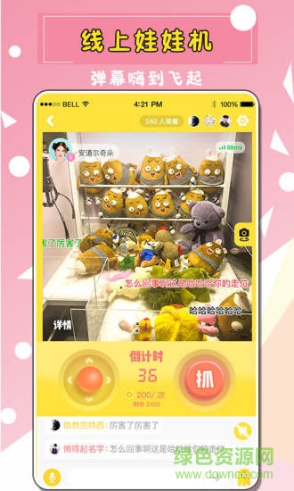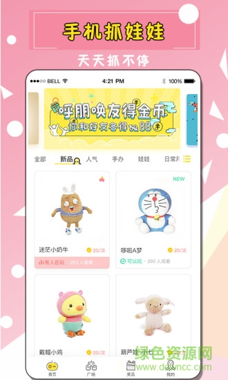 全民天天抓娃娃是一款非常火爆的手机抓娃娃游戏,通过这款软件可以线上实景抓娃娃,让你身临其境感受抓娃娃的乐趣,喜欢的朋友欢迎来绿色资源网下载试玩!