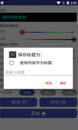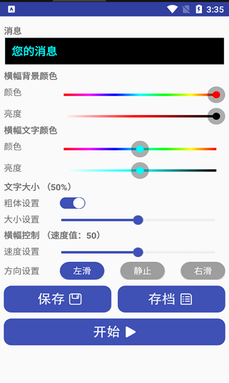 多点led字幕可以将手机屏幕变成led弹幕显示器,你可以自己输入显示的文字,可以修改文字的大小、颜色、背景等参数,能设置文字显示的特效以及滚动的效果以及时间等,每次设置的参数都能保存下来,下次可以直接使用,无需再次设置了,欢迎有需要的朋友下载使用!