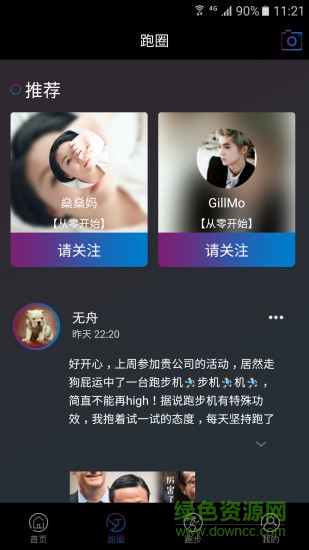 2、跑圈,查看他人的健身事迹,同时也可以分享自己的健身状态