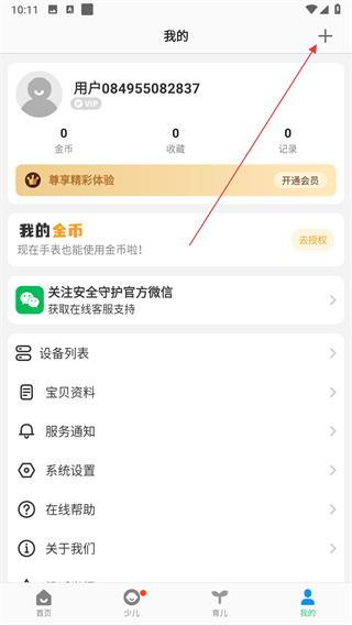 2、在个人中心页面,点击右上角+按钮,跳转至选择设备类型的页面。