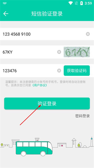 4、在验证码输入框填写收到的验证码,确认信息无误后,点击验证登录按钮完成操作。