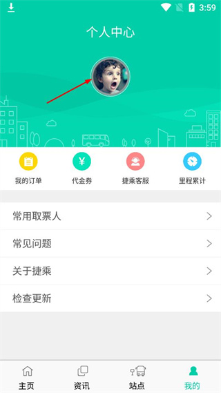 1、打开捷乘巴士主页,找到页面底部的我的选项,点击该选项进入个人中心页面。
