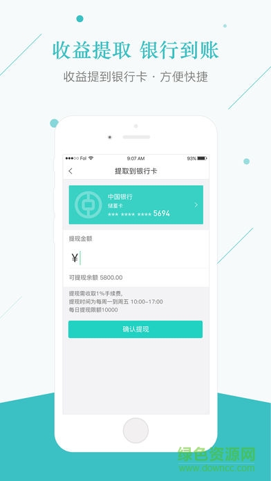 4、收益提取,银行到账,收益提到银行卡,方便快捷