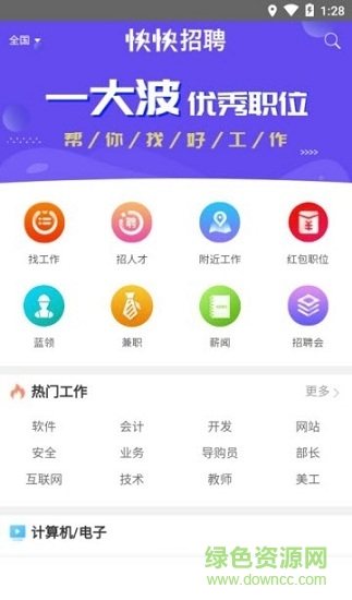 快快招聘app是一款手机招聘求职软件,用户可以通过软件找到更多优质的工作,轻松一键投递简历,直接预约面试,找工作就是这么简单,同时企业也可以在线查看更多的简历,招聘更多的人才,需要的用户就在绿色资源网下载吧!