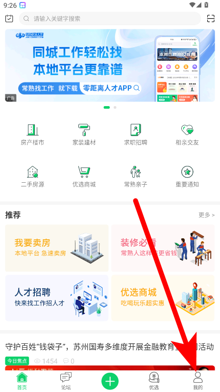 1、在常熟零距离首页,点击右下角我的选项,进入个人页面。