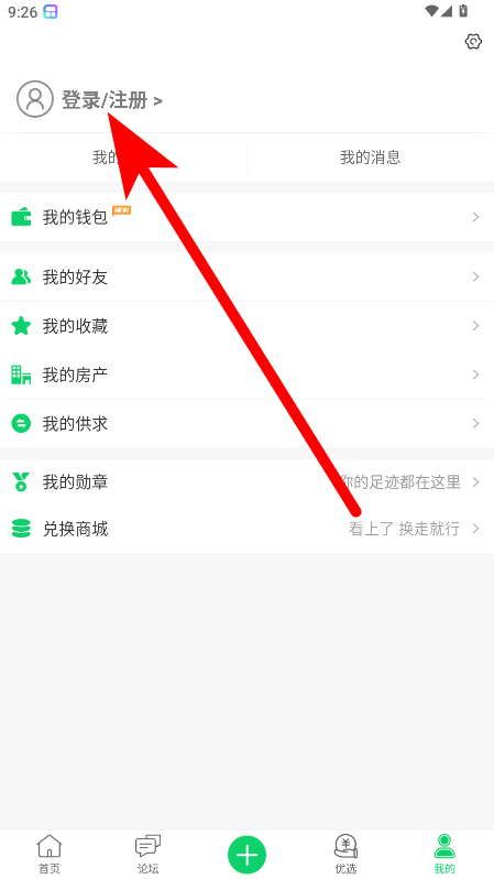 2、在个人页面,点击登录/注册选项,进入登录注册界面。