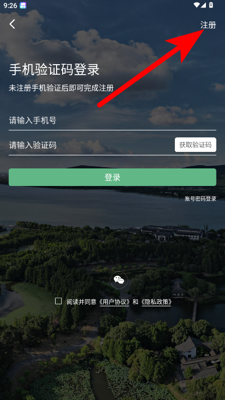 3、在登录注册界面,点击右上角注册选项,进入注册账号页面。